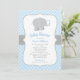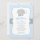 Modern Blue and Grey Elephant Boy Baby Shower Invitation