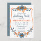 Modern Blue and Orange Flowers Frame Birthday Invitation