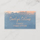 Modern trendy rose gold theme business card done in slate blue, with graphics of a rose gold sprayed across the top, of the card. Personalise the text to suit your business needs. A lovely stand out card for anyone.