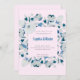 Modern Blue and White Floral Framed Pink Wedding Invitation