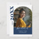 Modern Blue Arch Photo She Did It Graduation Announcement