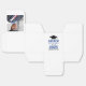 Modern graduation party favour boxes feature a senior photo, grad cap, and simple and black and royal blue typography design that can be personalised with the graduate's name and school. White background and text colours can be customised to match school or party theme colours.