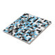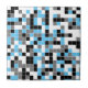 This ceramic tile features a colourful geometric pattern in sky blue, black, grey and white. The squares are coloured in a random pattern and you can edit the colours in the Design tool.