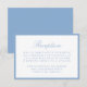 This reception enclosure card features “Reception” in elegant light blue calligraphy with classic serif lettering for your reception details below. A soft blue border frames the card, creating an airy, refined look that feels clean and timeless. The balanced layout offers a graceful way to present your reception information, making this enclosure well-suited for summer weddings, coastal venues, and classic celebrations.