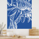 Modern Blue Botanical Floral Line Drawing Artwork Poster