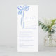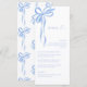 Add a charming finishing touch to your celebration with this modern blue bow bridal shower menu card. Featuring a soft watercolor ribbon motif in delicate shades of blue, this design blends playful elegance with clean, contemporary typography. The front showcases your customized menu details, while the coordinating bow pattern on the reverse creates a cohesive and stylish presentation for each place setting.
