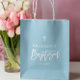 Modern Blue Boy Baptism Medium Gift Bag: A stylish medium-sized gift bag designed for your baby boy's baptism celebration. Featuring a modern blue theme with a clean geometric design, subtle accents, and elegant typography. Perfect for presenting favours, keepsakes, or gifts, this bag adds a polished touch to your special day.