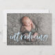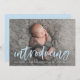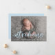 Modern Blue Brush Script Introducing Photo Birth Announcement