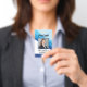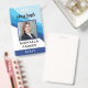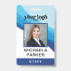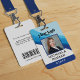 This modern blue employee Photo ID badge with a logo template is versatile and stylish, with an abstract blue wave behind the photo template. The background colours can easily be changed to match your company colours by clicking on "Edit using Design Tool."