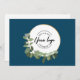 Featuring our exclusive modern wreath illustration in gold, green, and white, framing your logo on a blue. The design exudes elegance, cleanliness, chicness, and style, making it a sophisticated choice for your business holiday cards.
