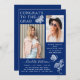 Modern Blue White Butterfly Photo Graduation Party Invitations features the simple text "Congrats to the Grad" accented with a flower and butterflies with two of your favourite photos and personalised with name and graduation party details in elegant white script typography. Personalise by editing the text in the text boxes provided and adding your favourite photos. Designed by ©2023 Evco Studio www.zazzle.com/store/evcostudio