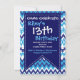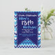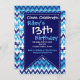 A fun and bold pattern birthday party invitation or event invitation, with blue, teal, and turquoise chevron zigzag and geometric patterns. The back side has the full colour pattern design. This invitation is shown as a 13th birthday party invitation, but these cute birthday party invitation templates can easily be used for a kids or adults, or can be customised for any type of party or event. Simply fill in the text with your own party details. If you want to change the colour of the text or rearrange things, simply use the "Customise It" button. The back of the invitation has the same colourful pattern as the front side.