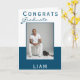 Modern Blue Congrats Graduate Graduation Photo Card with a Graduate Name and a Photo. Graduation card with text Congrats, graduate and graduate name in dark blue and photo of the graduate on the front side - personalise with your name and your photo. Personalise or erase the text inside the card. The graduation cap is on the back.