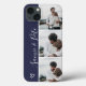 Modern blue couple names 3 photos collage grid Case-Mate iPhone case