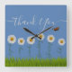 Modern Blue Daisy Floral Thank You Typography Square Wall Clock