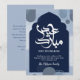 A modern Eid Mubarak card featuring a deep blue Islamic arch shape with abstract contemporary elements. Ideal for those who love minimalist and modern designs while still honoring Islamic traditions during Eid celebrations.