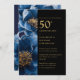 Modern Blue Floral Black And Gold 50th Anniversary Invitation