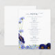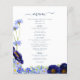 Beautiful artist hand painted watercolor wildflowers and foliage in blush blue, cornflower blue, navy, purple and green hues, ideal for a unique spring or summer day of the wedding menu. Elegant modern typography script in navy blue complements the whimsical boho stunning hand painted artwork which includes cornflowers, poppy, cosmos, forget me nots and delicate foliage. Chic bohemian wedding menu perfect for a spring meadow, summer garden wedding. Original artwork by artist Catherine Sweetman