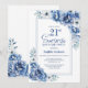 Modern Blue Floral Surprise 21st Birthday Party Invitation