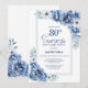 Modern Blue Floral Surprise 80th Birthday Party Invitation