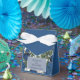 A modern blue and white floral wedding design featuring watercolor flowers. This contemporary modern wedding design is ideal for all seasons, Spring, Summer, Fall, Winter. An elegant blue and white roses and their greenery watercolor illustration design. A classic blue floral themed wedding favour box design with modern elegant elements. Matching wedding invitations and other stationery items are also available.