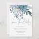 Modern Dusty Blue Florals QR Code Wedding. Gorgeous flowers in shades of blue and white and an elegant set script for Save The Date. The rest of the text you can easily personalise with your details. Add your QR code to your wedding website on the back or delete this and the text on the back if not required.