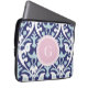 Modern blue girly ikat tribal pattern monogram laptop sleeve