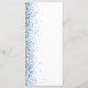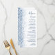 The left-hand edge of this elegant modern wedding menu features a blue faux glitter design. The customisable text combines blue handwriting, copperplate and italic fonts on a white background. The reverse side features a matching blue and white glitter design.