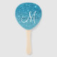 Modern Blue Glitter Sparkles Personalised Name Hand Fan