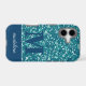 Give your phone a stylish upgrade! This girly phone case features an aqua sparkly glitter background with a navy monogram initial and is personalized with your name.