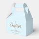 In a soft blue colour, this favour box showcases an adorable and elegant design. It features a printed gold "Baptism" script and a cross, adding a touch of elegance and symbolism to the box. This combination of blue and gold creates a modern and stylish aesthetic.