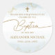 Modern Blue Gold Cross Boy Baptism Classic Round Sticker