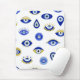 Protect your workspace with style and symbolism using our Modern Blue Gold Evil Eyes Mouse Pad. This striking mouse pad features a contemporary design of blue and gold evil eyes, a symbol traditionally known to ward off negative energy and bring good fortune. The intricate pattern, set against a sleek background, adds a touch of elegance to your desk while providing a smooth surface for optimal mouse movement.