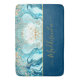 Modern Blue Gold Marble Ocean Watercolor Name Bath Mat