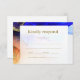 Modern wedding invitation response card with translucent alcohol ink art. This wedding invitation suite is decorated with rich sapphire blue, purple, violet, orange, peach, and gold colours. You can easily edit the template to your desired wedding details. Original art by international artist Pauline Benjes. Modern Blue Gold Orange Wedding RSVP Card.
