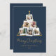 Modern photo Christmas cards featuring 6 of your pictures in a minimalist tree shape collage on blue color background.