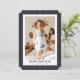 Modern blue and gold photo New Year card featuring elegant strands. Easily personalise this minimalist, yet stylish holiday card online.