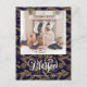 Send customisable and personalised holiday greetings to friends, colleagues and family in simple, chic, elegant and modern photo design festive, natural minimalist style cards! A beautiful golden calligraphy of " Blessed " frames on bottom of your photo in front. Below the photo features your custom greeting message from your family name in modern typography. Reverse to reveal a beautiful golden Christmas tree leaves & snowflakes in dark navy blue background.