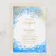 Modern Blue Gold Splash Surfer Wave Beach Wedding Invitation