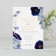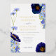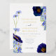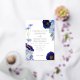 Beautiful artist design hand painted watercolor wildflowers with elegant gold and navy blue elegant modern typography script wedding invitation. Botanical themed wedding stationary with spring and summer flowers including cosmos, cornflowers, daisies, poppies and forget me nots with foliage. Easy to use template and perfect for a unique botanical navy blue themed wedding with blue hues, purple and green. Unique original artwork by artist Catherine Sweetman