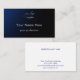 Personalize this stylish blue gradient business card template with your logo and custom text. All the modern clear white script on the front and deep blue script on the back is editable. This minimalist professional business card template will give your clients a great impression. Share your name, profession, address, email, website and more with this calling card. The dark blue and black card would be perfect for a financial advisor, IT consultant, property manager, lawyer or doctor.