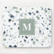 Modern Blue Green Terrazzo Marble Monogram Mouse Pad
