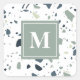 Modern Blue Green Terrazzo Marble Monogram Square Sticker