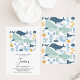 Cute and modern in style boy's under the sea themed first birthday invitation featuring various cute sea creatures. This under the sea or oneder the sea themed birthday invitation features a whale, shark, dolphin and more. Can also be used for any age.