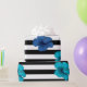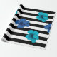 Modern Blue Hibiscus Black White Stripes Wrapping Paper