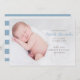 An elegant modern birth announcement to announce the arrival of your new baby boy to the most important people in your life. Easily personalise with a favourite photo and all the important details including name, birth date, birth stats and parents names in simple grey and blue typography.