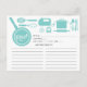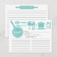Contemporary Bridal Shower Kitchen Recipe Cards featuring a stylish hand lettered typography script font with a frying pan, whisk, spatula, hand mixer, pot, rolling pins & utensils. The front of our recipe card offers room for a recipe title, servings, prep time & total time and ingredients space. Flip our recipe card view directions. Visit our shop for matching bridal shower invitations Available in our shop in a large assortment of popular wedding shower colours. Perfect bridal shower invitation insert for a stock the kitchen bridal shower.