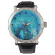 Stones, crystals and minerals are a timeless trendy style.  This print features and up close image of a vibrant blue geode stone, complete with little crystals in the agate pocket.  An overall bright turquoise or aqua blue colouring with unique lines and banding.  A playful but modern and stylish look.  Cute Trendy Bright Blue Turquoise Crystal Geode Watch