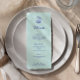 Add a refined coastal touch to your reception tables with the Modern Blue Mediterranean Shell Wedding Menu from the ROMEO Collection.