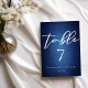 Modern Blue Minimalist Evening Wedding Table Number